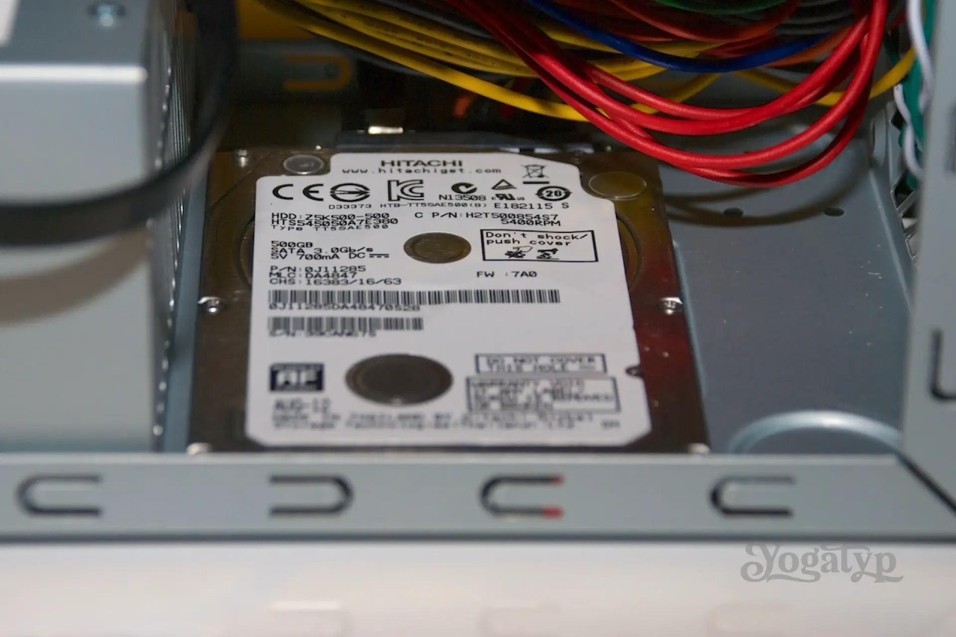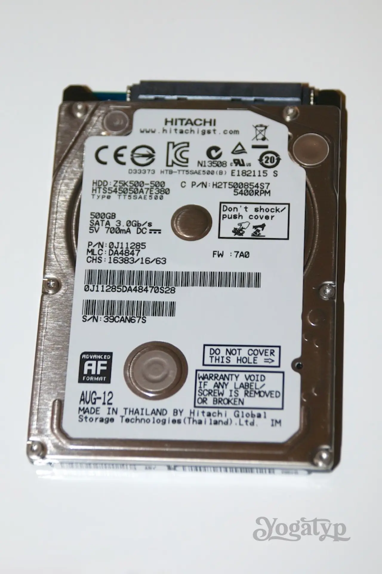 - Festplatte 2,5″ mit 500 Gigabyte von HGST, Modell HTS545050A7E380