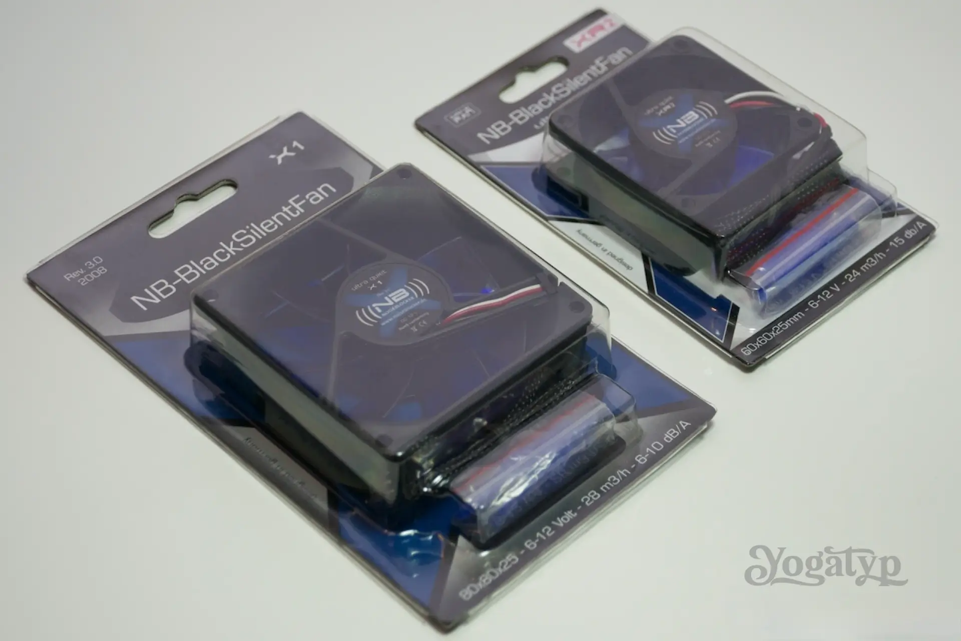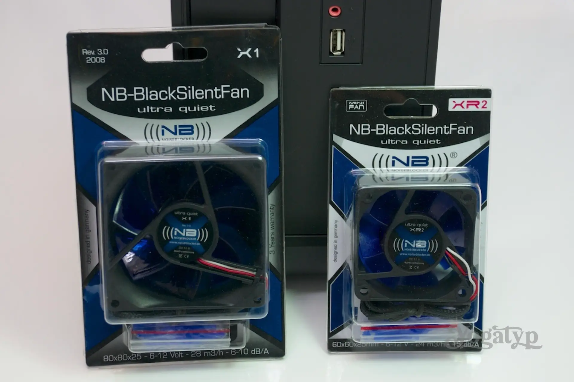 - 2 Gehäuselüfter, einmal Noiseblocker BlackSilentFan XR2 Lüfter (60x60x25) und einmal Noiseblocker BlackSilentFan X1R Lüfter (80x80x25)